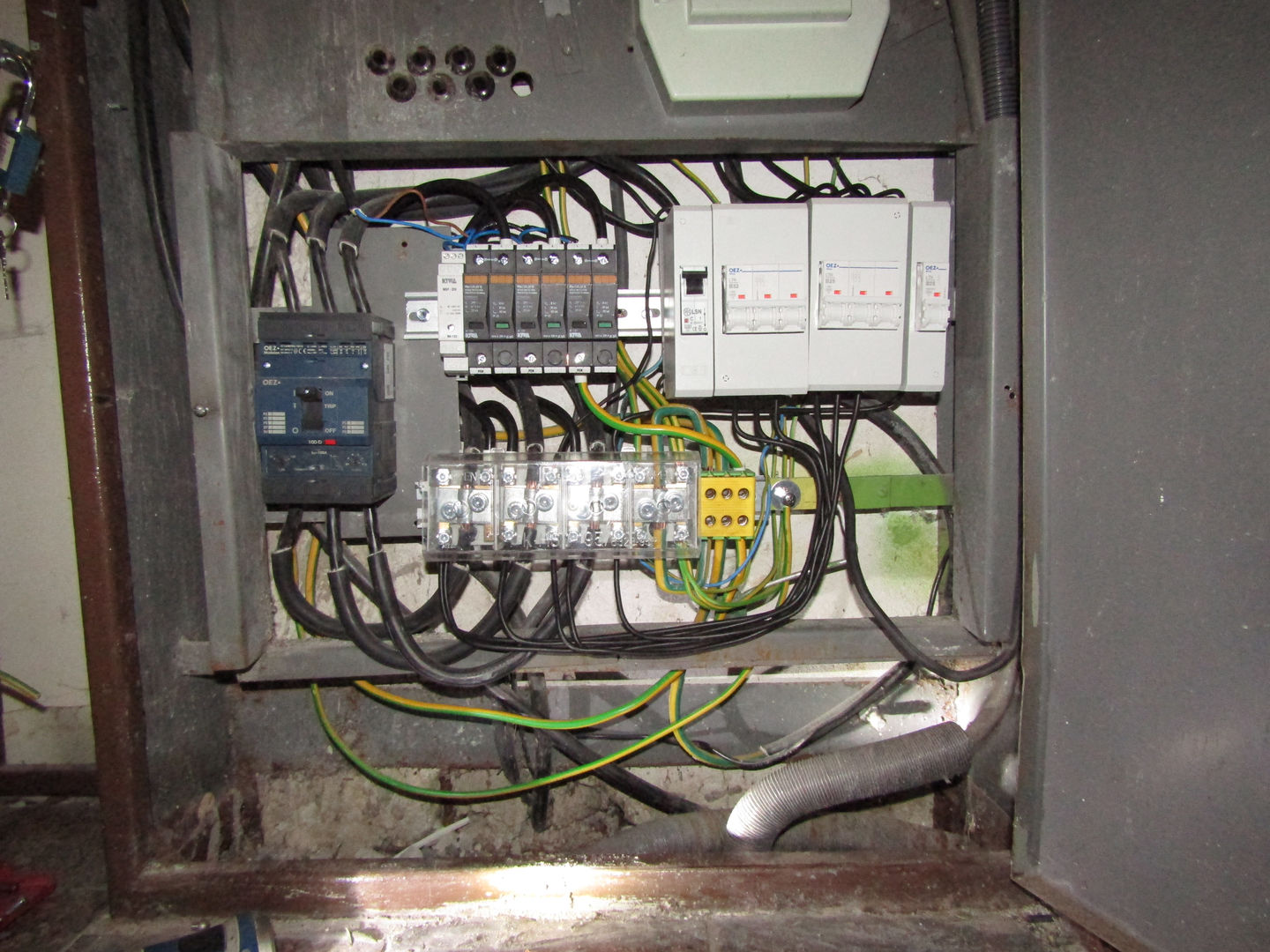 Do JOP na prízemí sme namontovali do nemeranej časti rozvodu zvodič bleskových prúdov. Ku každému odbernému miestu potom stredné prepäťové ochrany (meraná časť rozvodu).