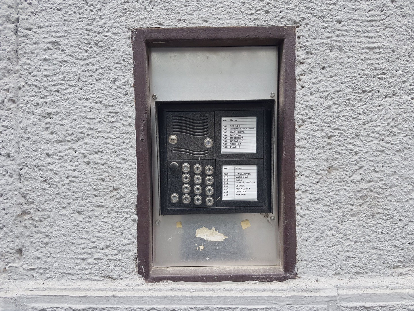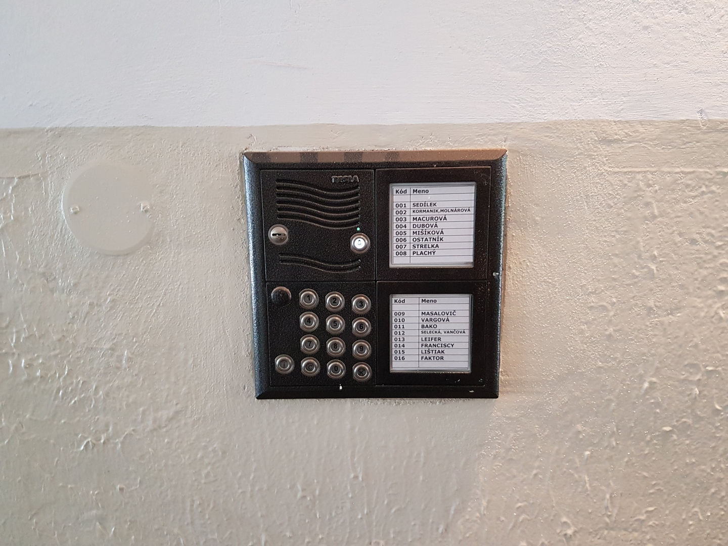 Okrem tabiel sme vymenili bytové telefóny a napájací zdroj, tiež sme urobili nové zvonenie do bytov. Staré zvončekové tlačidlá sme nahradili tlačidlami LEGRAND VALENA. Po stlačení tlačidla zazvoní domáci telefón iným tónom ako pri zvonení zo zvončekových tabiel. Tóny oboch tabiel sa tiež líšia.