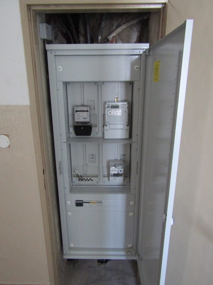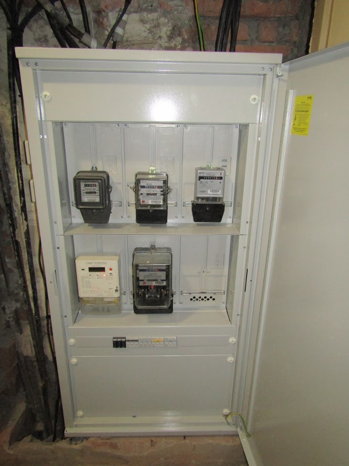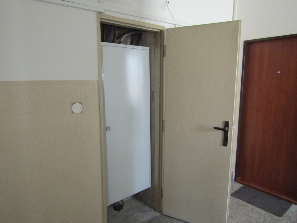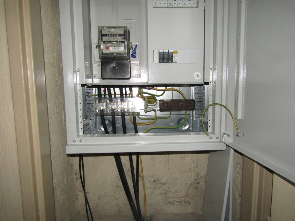 Pôvodné elektromerové rozvádzače umiestnené za dverami vo výklenku oproti výťahom sme vymenili za nové elektromerové rozvádzače EATON.