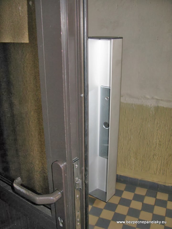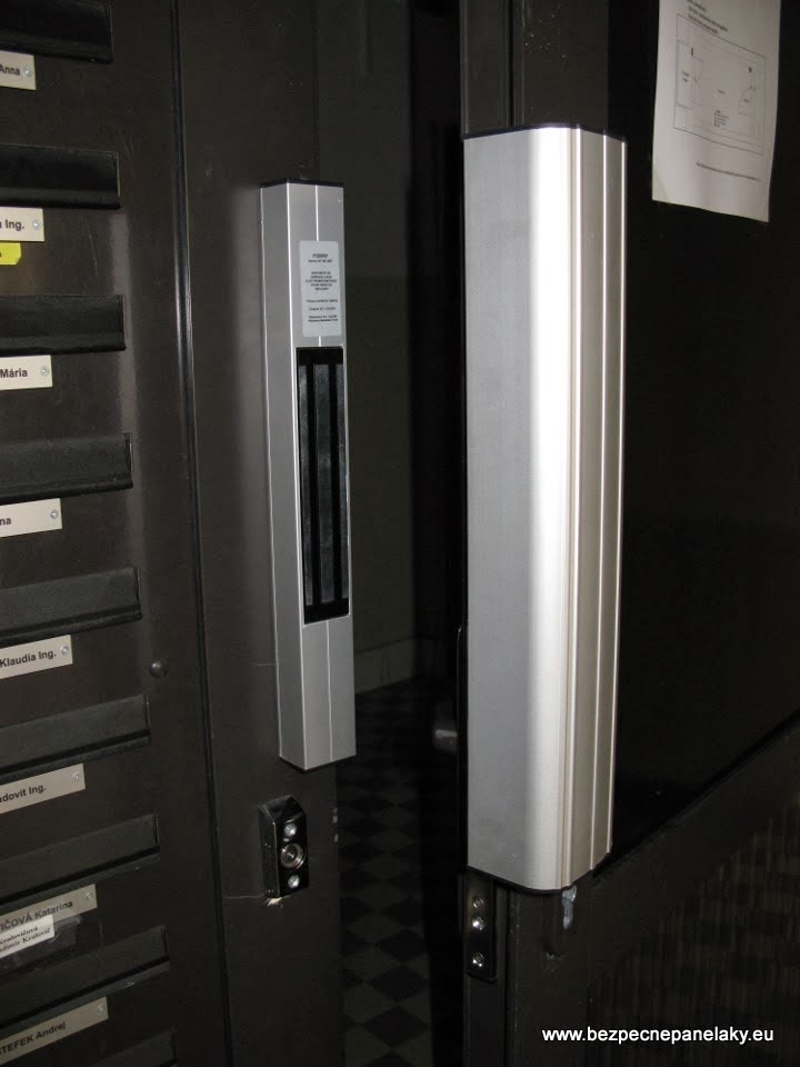 Tento prístupový systém sme nahradili RAK DEK systémom a na bránu sme namontovali malú dvernú lištu, ktorá drží dvere zavreté silou 300 kg.