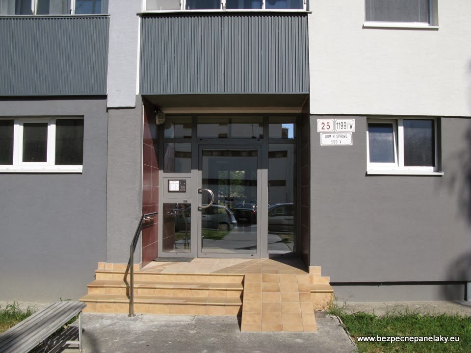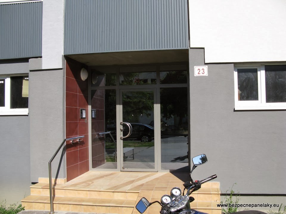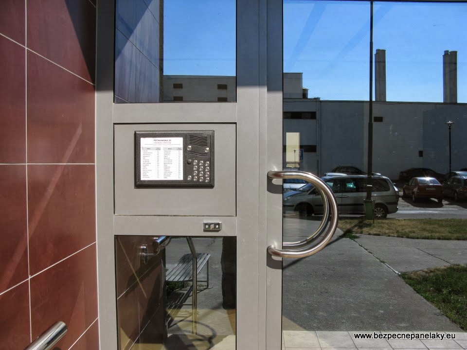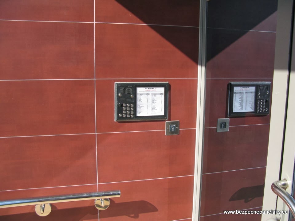 V obidvoch vchodoch bytového domu na Pečnianskej 23,25 v Bratislave sme v novembri 2012 vymenili pôvodné staré analógové dorozumievacie zariadenie za nový digitálny dorozumievací systém DDS Karát s kódovou voľbou vytáčania bytov.