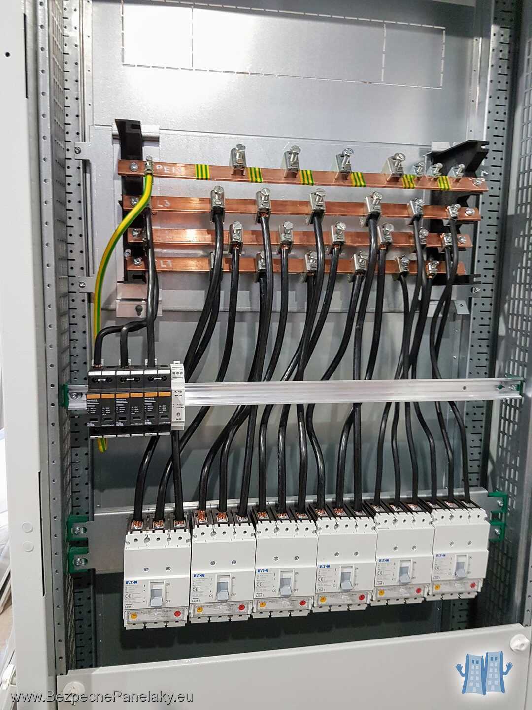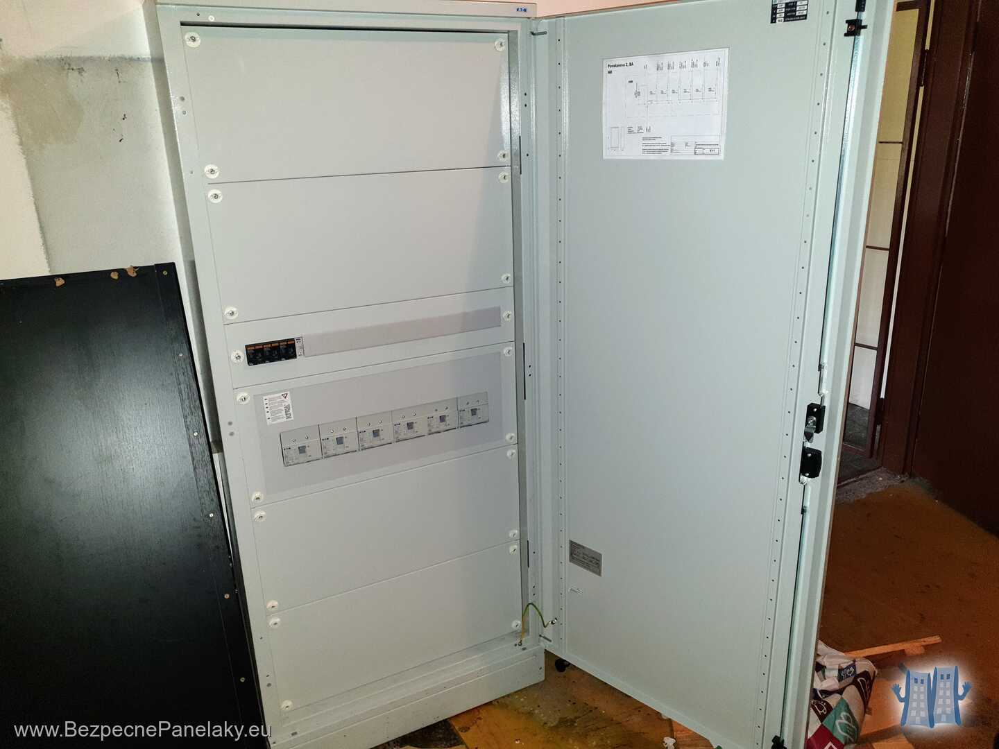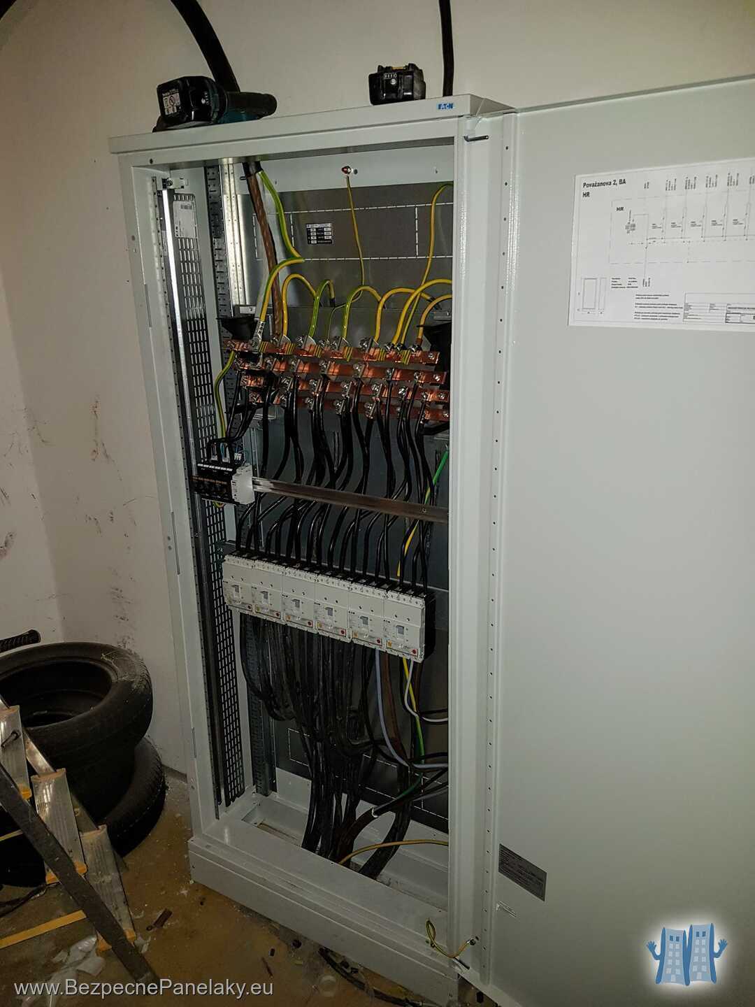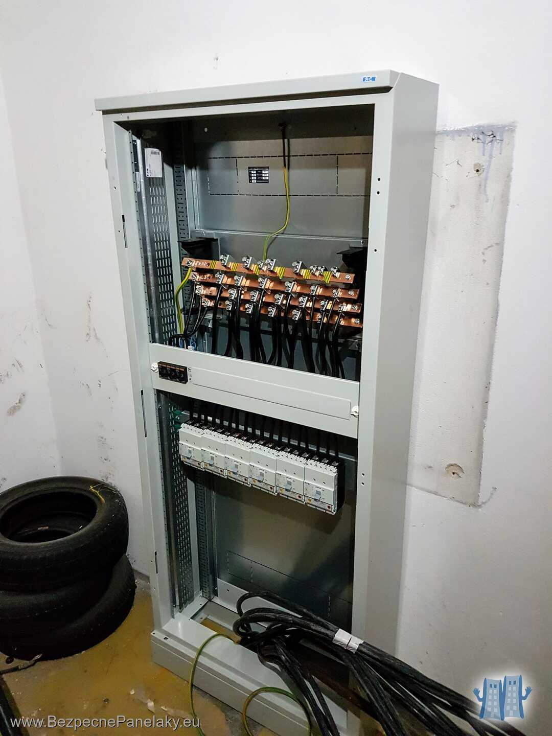My sme dodali a namontovali nový rozvádzač HR vrátane prívodu z prípojkovej skrine. Zapojili sme doň všetky nové HDV, prívod pre výťahy a tiež napojenie nebytových priestorov. HR obsahoval tiež hlavnú prepäťovú ochranu pre celý bytový dom a nulovaciu svorku pre zriadenie hlavného pospojovania.