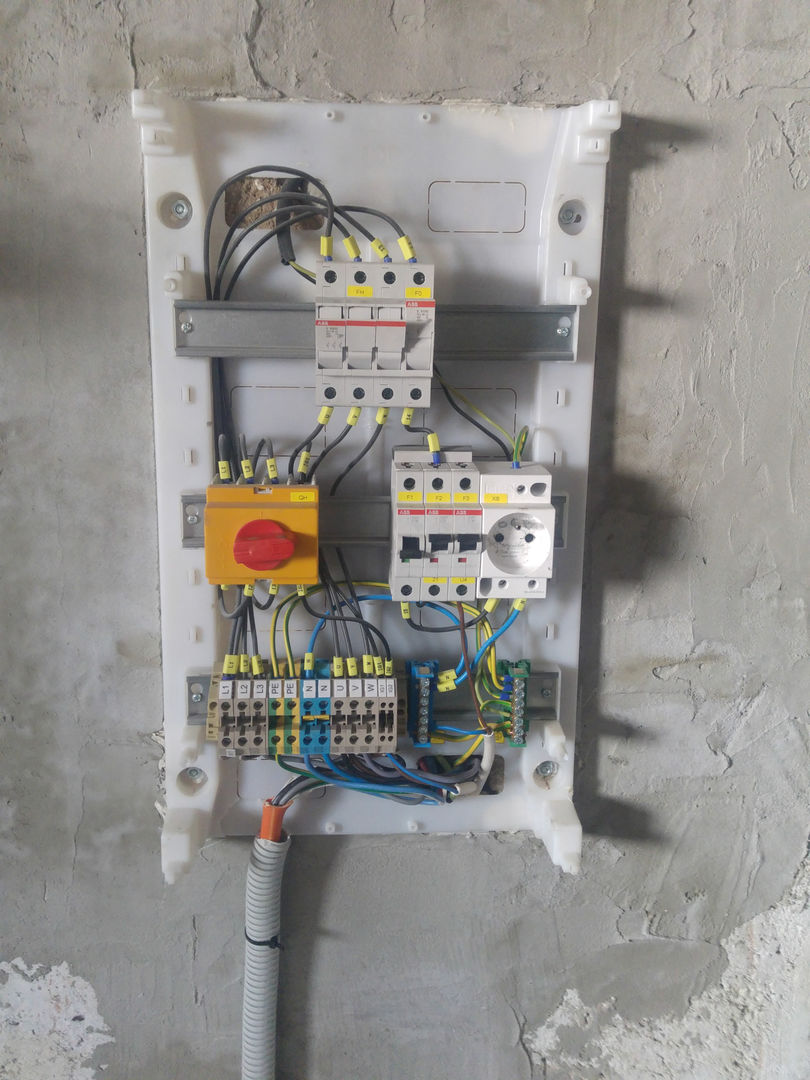 Viedli sme ich výťahovými šachtami a ukončili sme ich v plastových rozvodniciach podľa návrhu výťahárskej firmy.