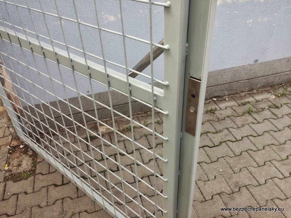 Do tejto brány sme nainštalovali prístupový systém DEK SIEŤ s elektromagnetickým zámkom, ktorý drží dvere zavreté silou približne 300 kg.