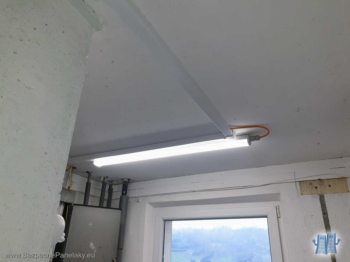 Kobky za výťahmi sme osvetlili LED prachotesnými svietidlami PHILIPS spínanými klasicky vypínačmi.