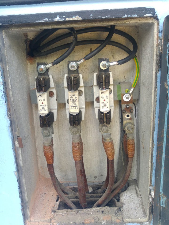S vedením sme vymenili aj stupačkové svorkovnice za nové s plastovými krytmi. Vodorovné HDV sme viedli v pevných rúrkach na povrchu.