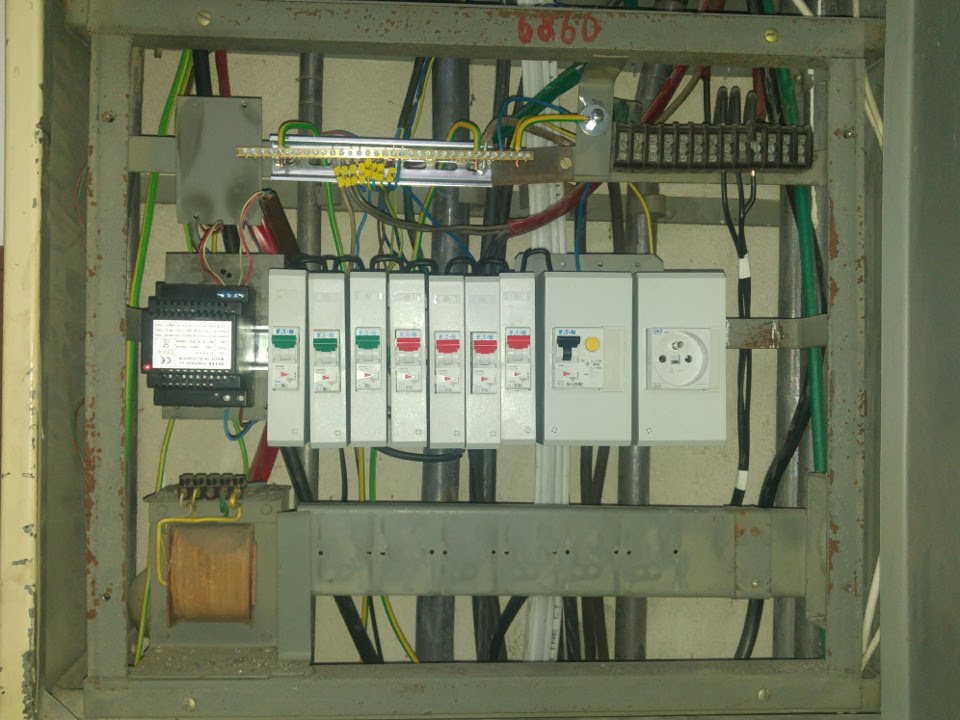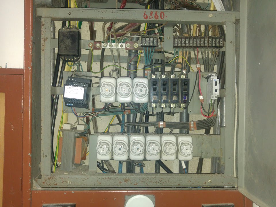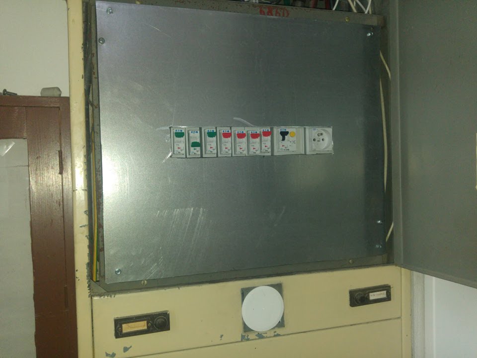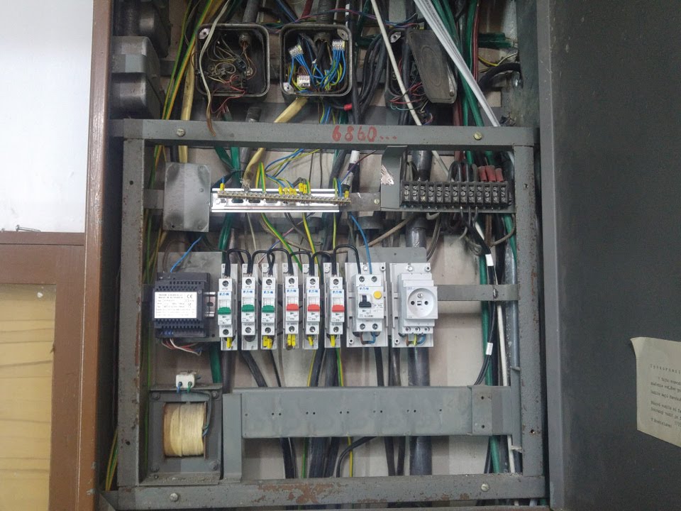Pôvodné poistky a staré ističe sme nahradili novými ističmi v prevlečných krytoch. Vymenili sme aj nulovacie svorkovnice, poodpájali nefunkčné káble, upratali zapojenie rozvádzačov. Nakoniec sme zrepasovali krycie plechy. Doplnili sme zásuvku napájanú cez prúdový chránič s nadprúdovou ochranou. Do rozvádzačov sme umiestnili jednopólové schémy skutočného zapojenia.